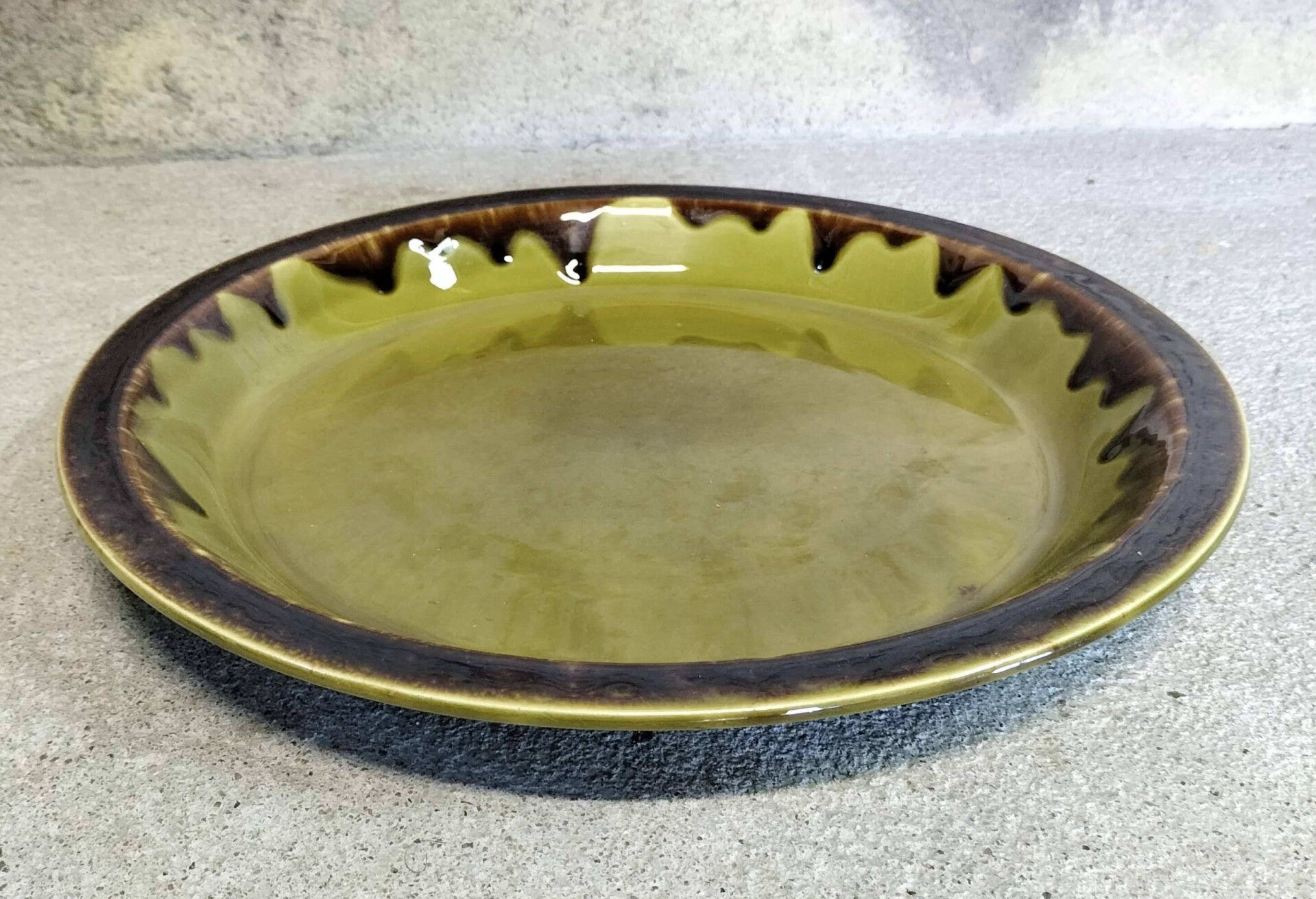 Grand plat de service rond, centre de table en faïence de Gien. Bon état, quelques traces d'usage visibles sur les photos.