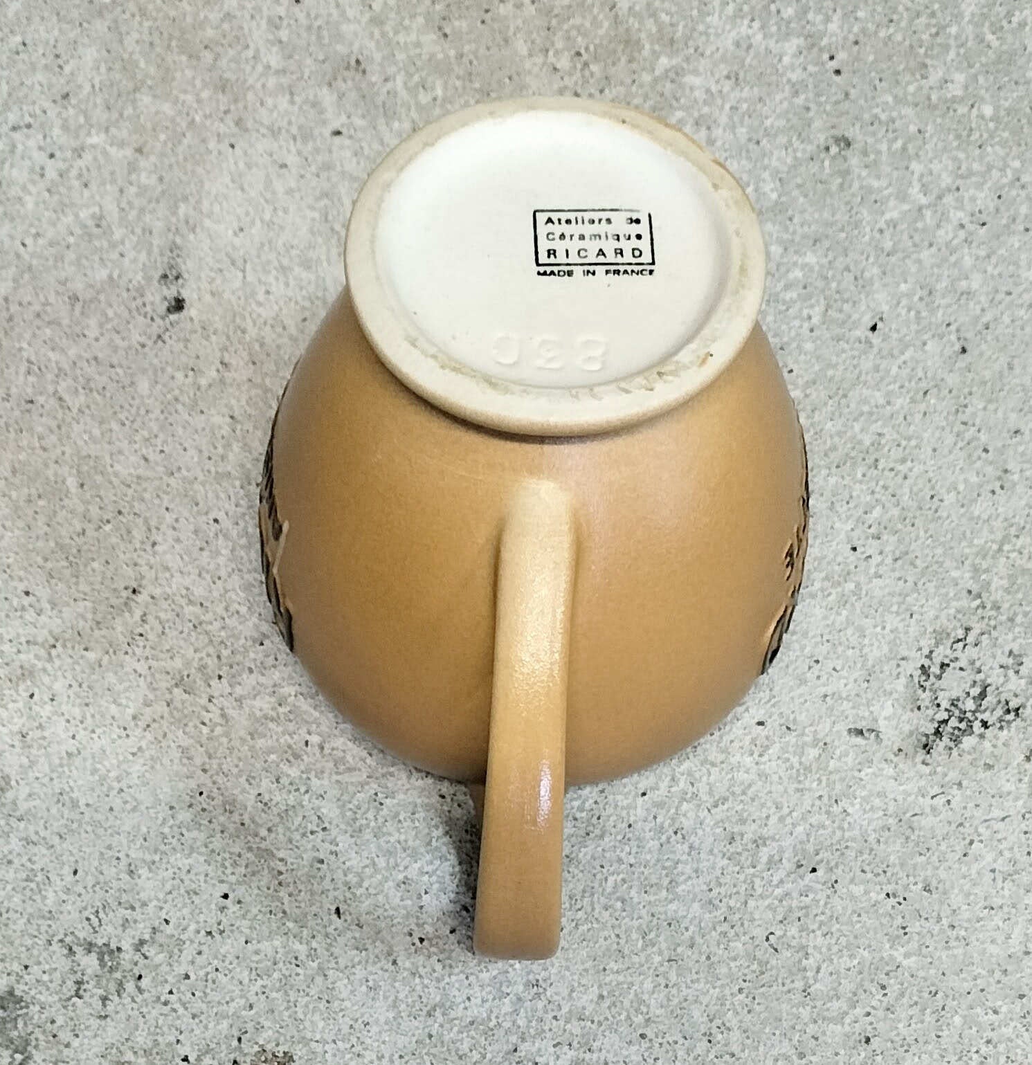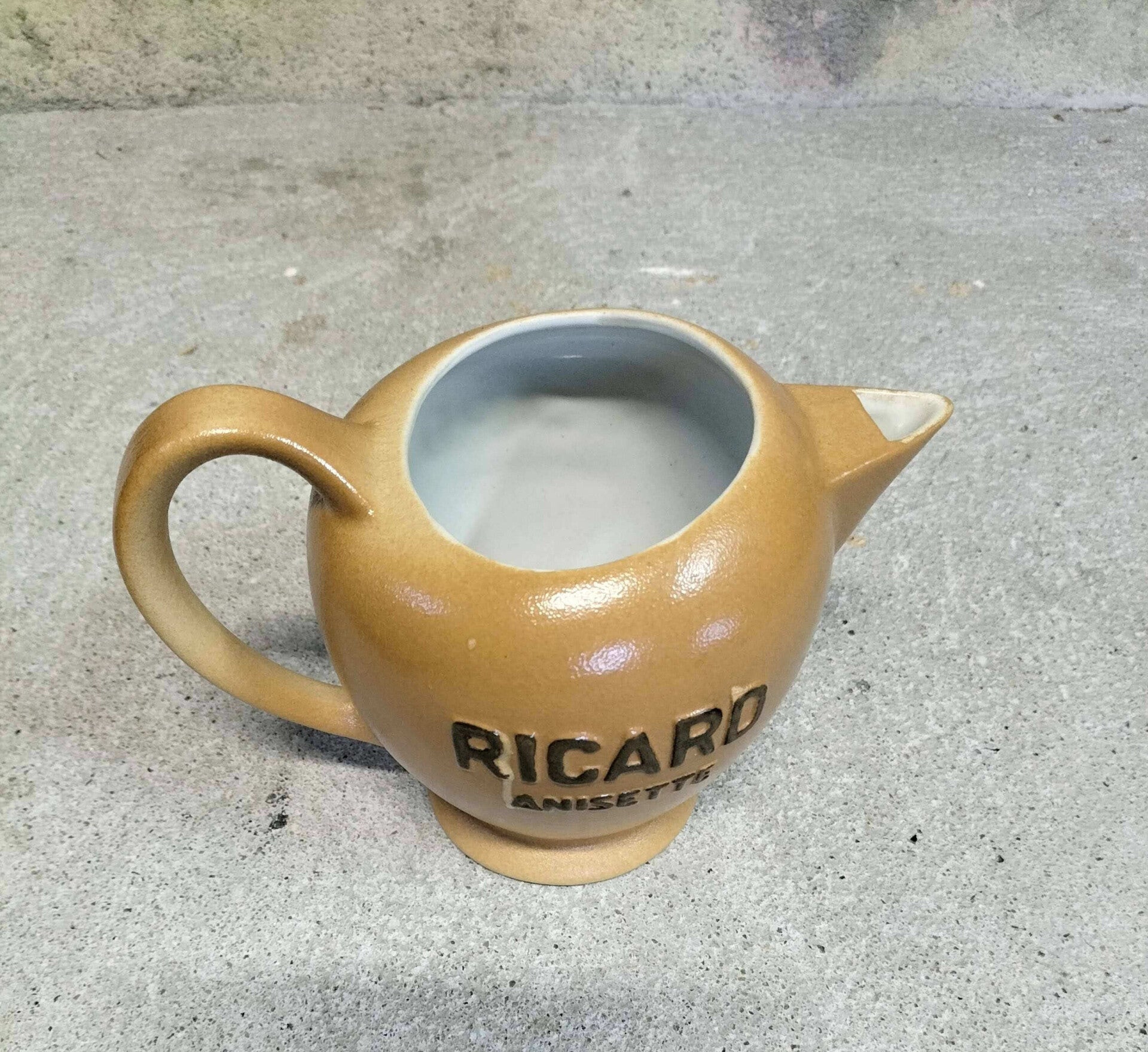 Pichet Ricard Anisette en céramique marron claire. Inscription sous le pot : 830, Ateliers de Céramique Ricard, Made in France.