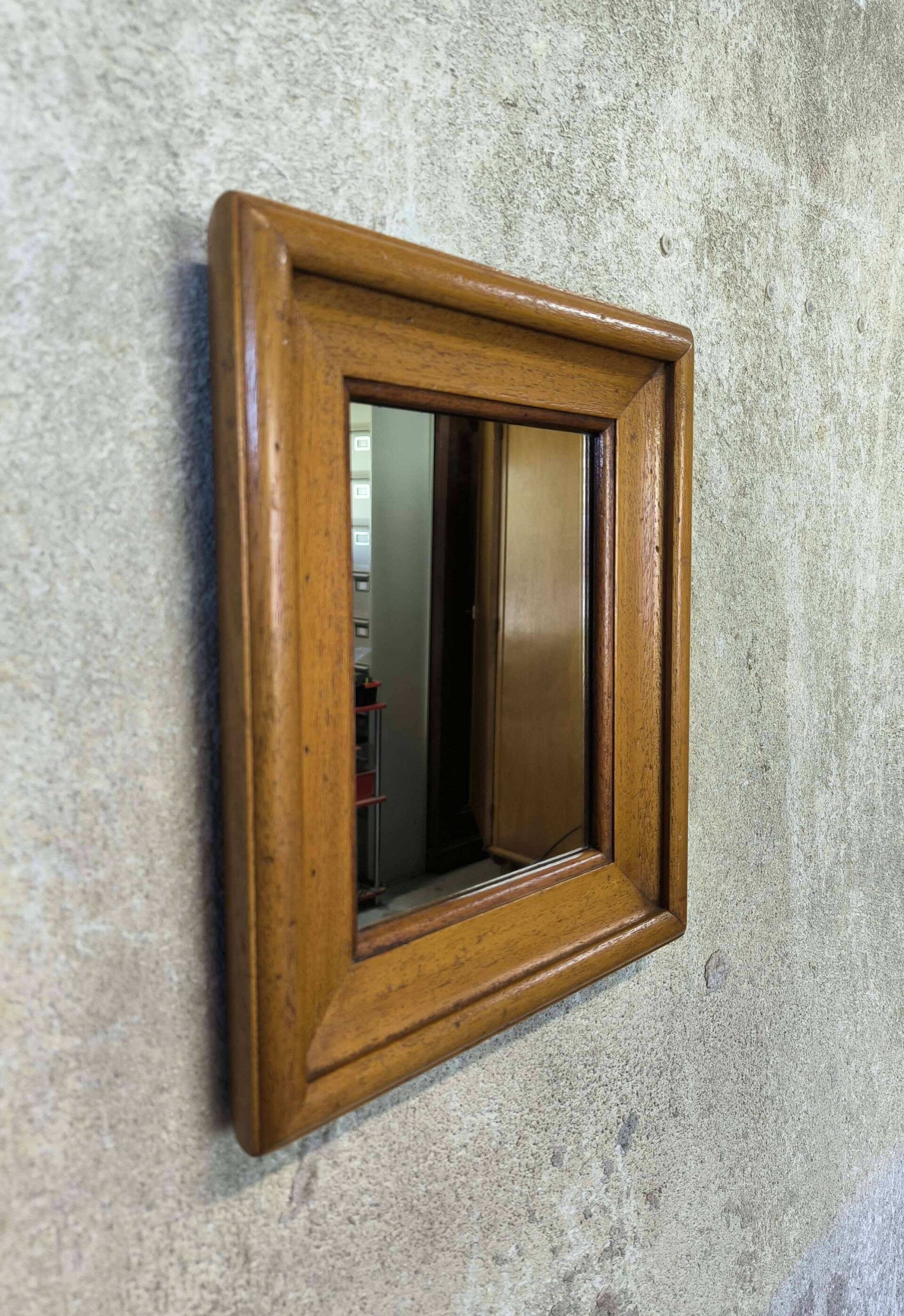 Miroir vintage en bois massif vernis de forme rectangulaire. Bon état.