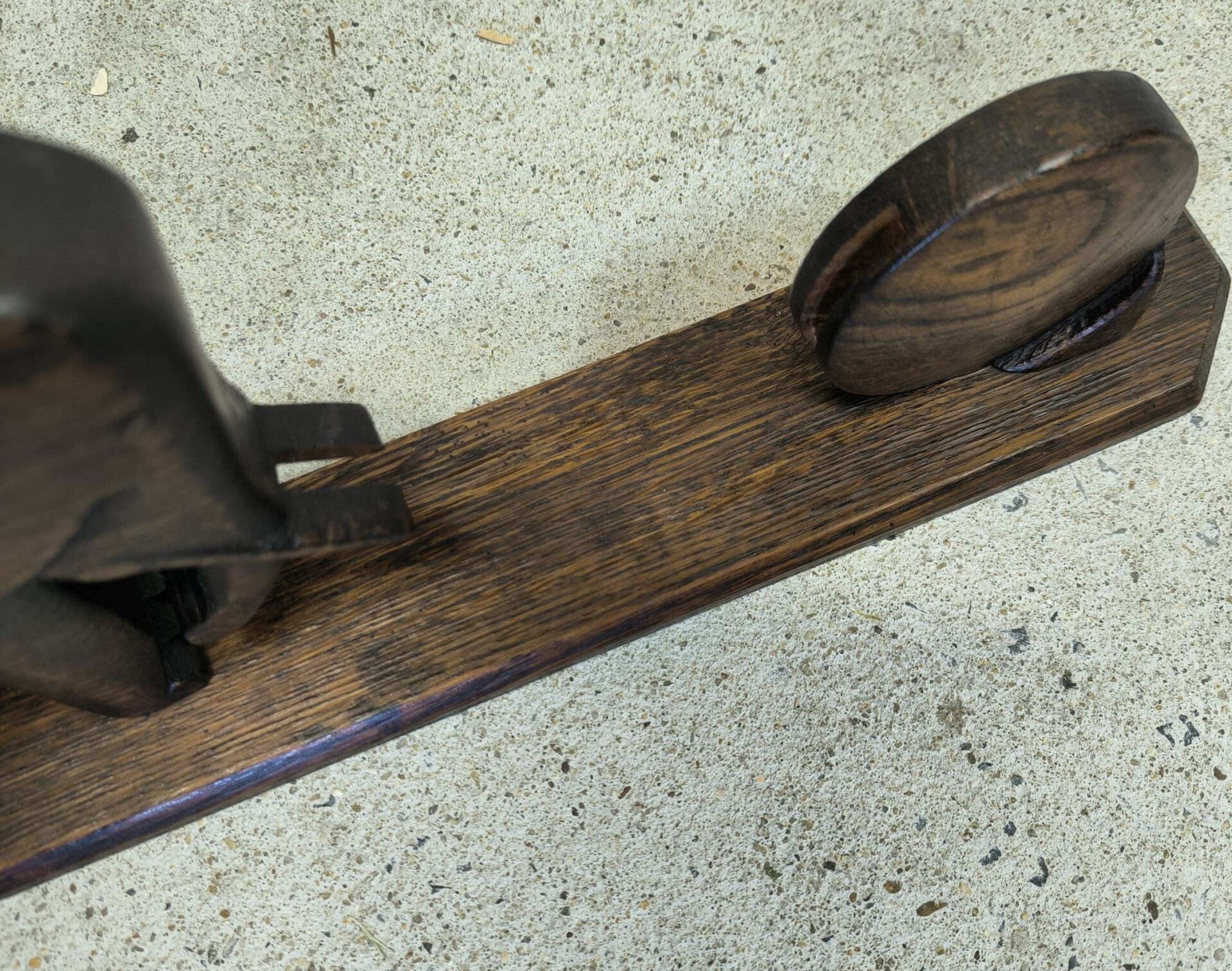 Porte courrier éléphant vintage en bois massif. Bon état. 11 cm d'espace entre l'éléphant et la boule en face de lui pour mettre une carte postale, une photo, des enveloppes...