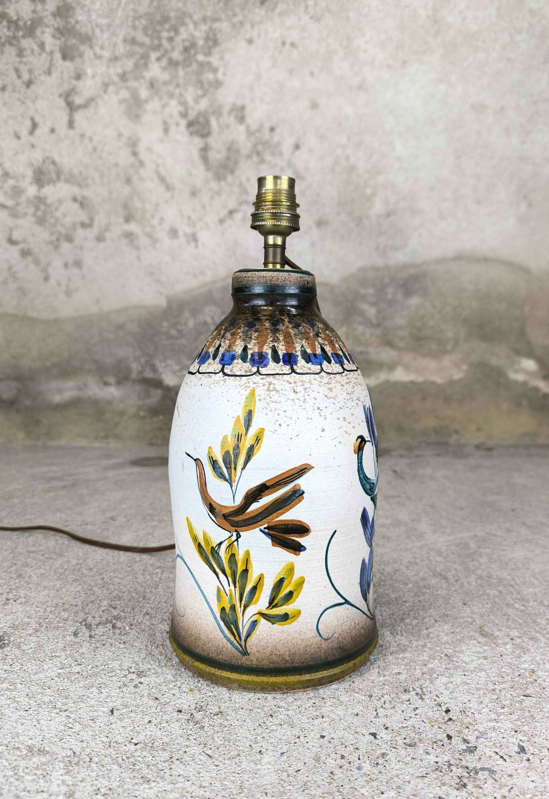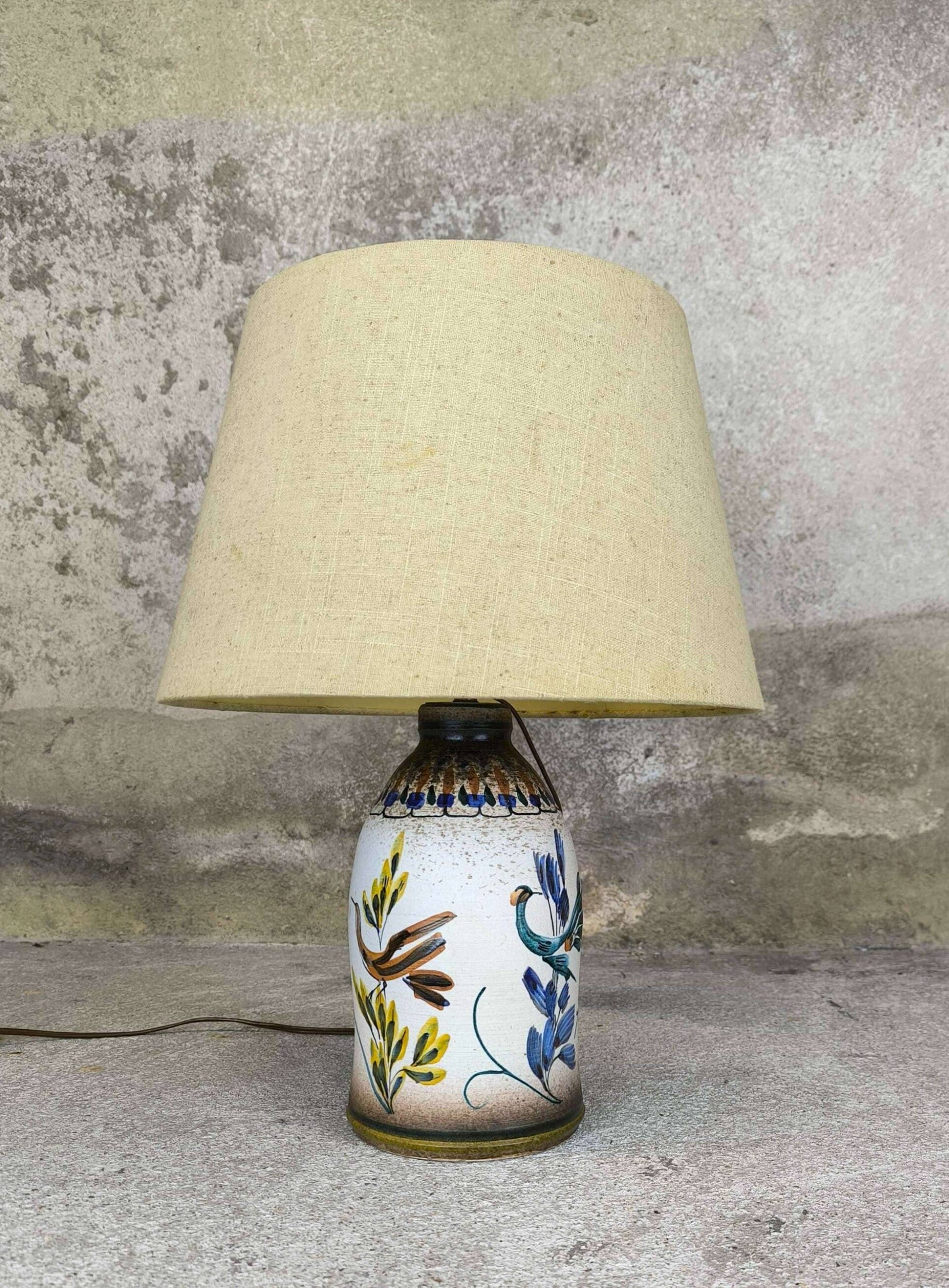 Lampe à poser, lampe de table signée Robert Mahéo. Bon état, quelques petits manques visibles sur les photos.