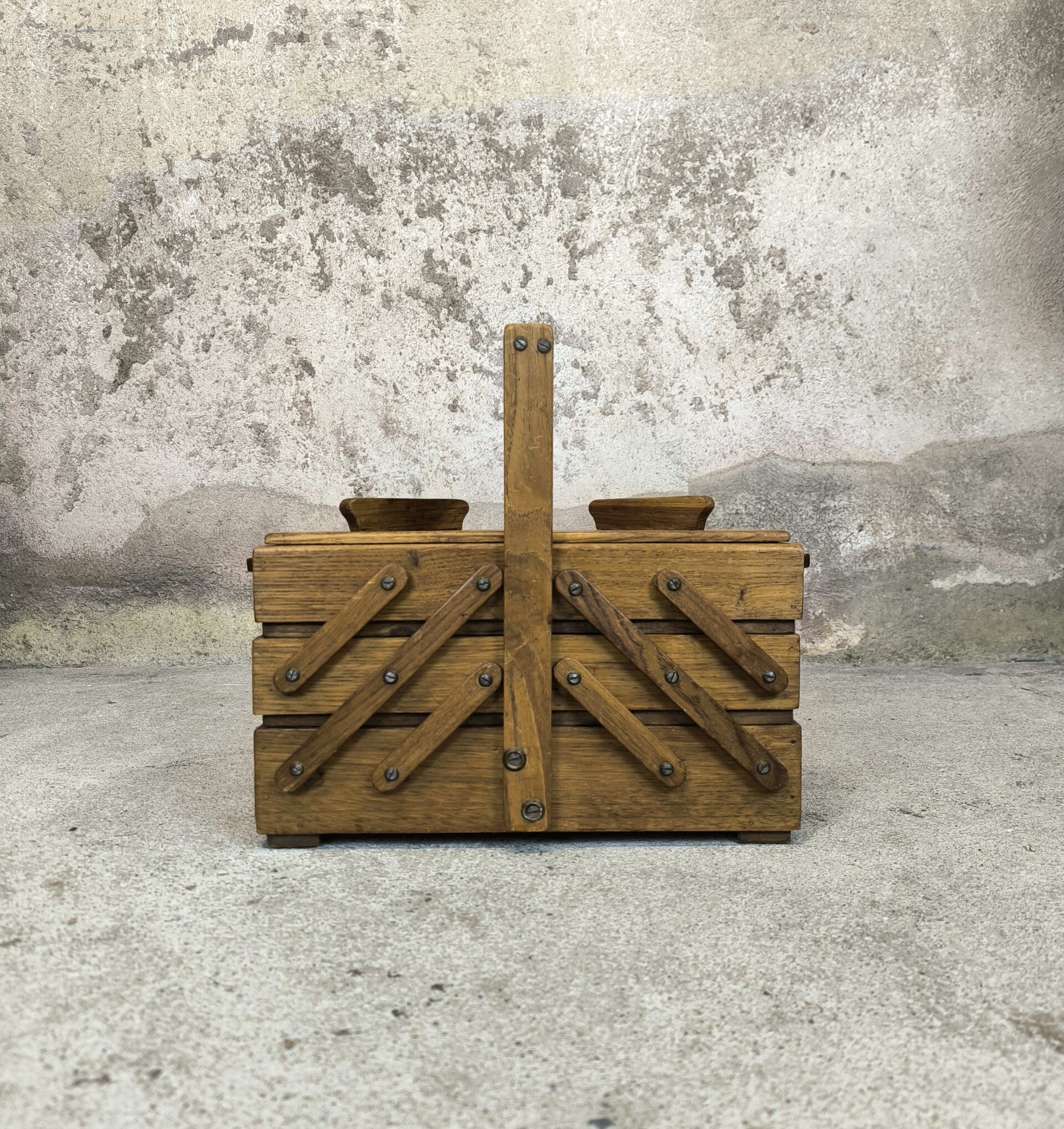 Travailleuse, boîte à couture vintage en bois. Bon état.