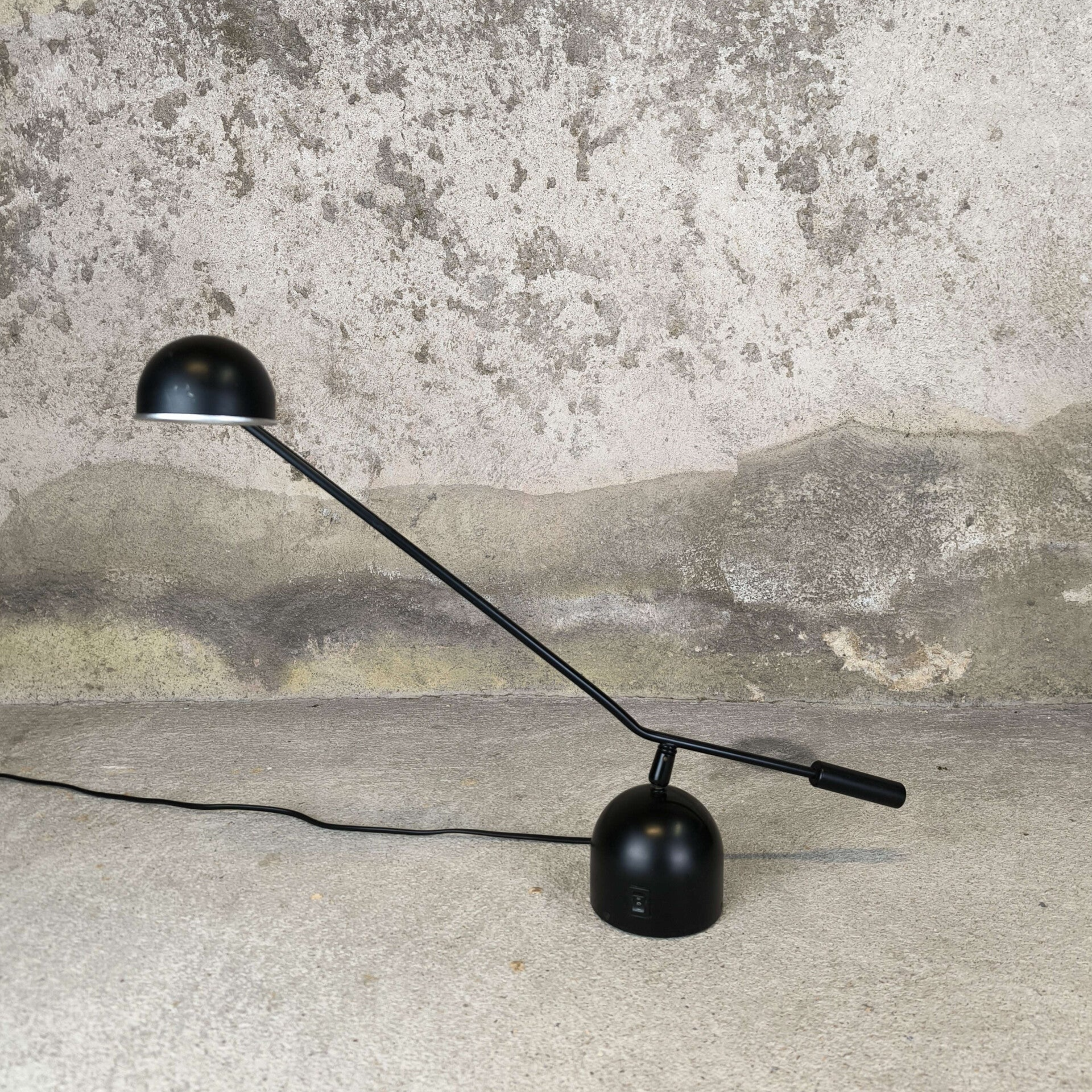 Lampe de bureau vintage en métal laqué noir des années 80/90. Bras et tête orientable, deux intensités d'éclairage.